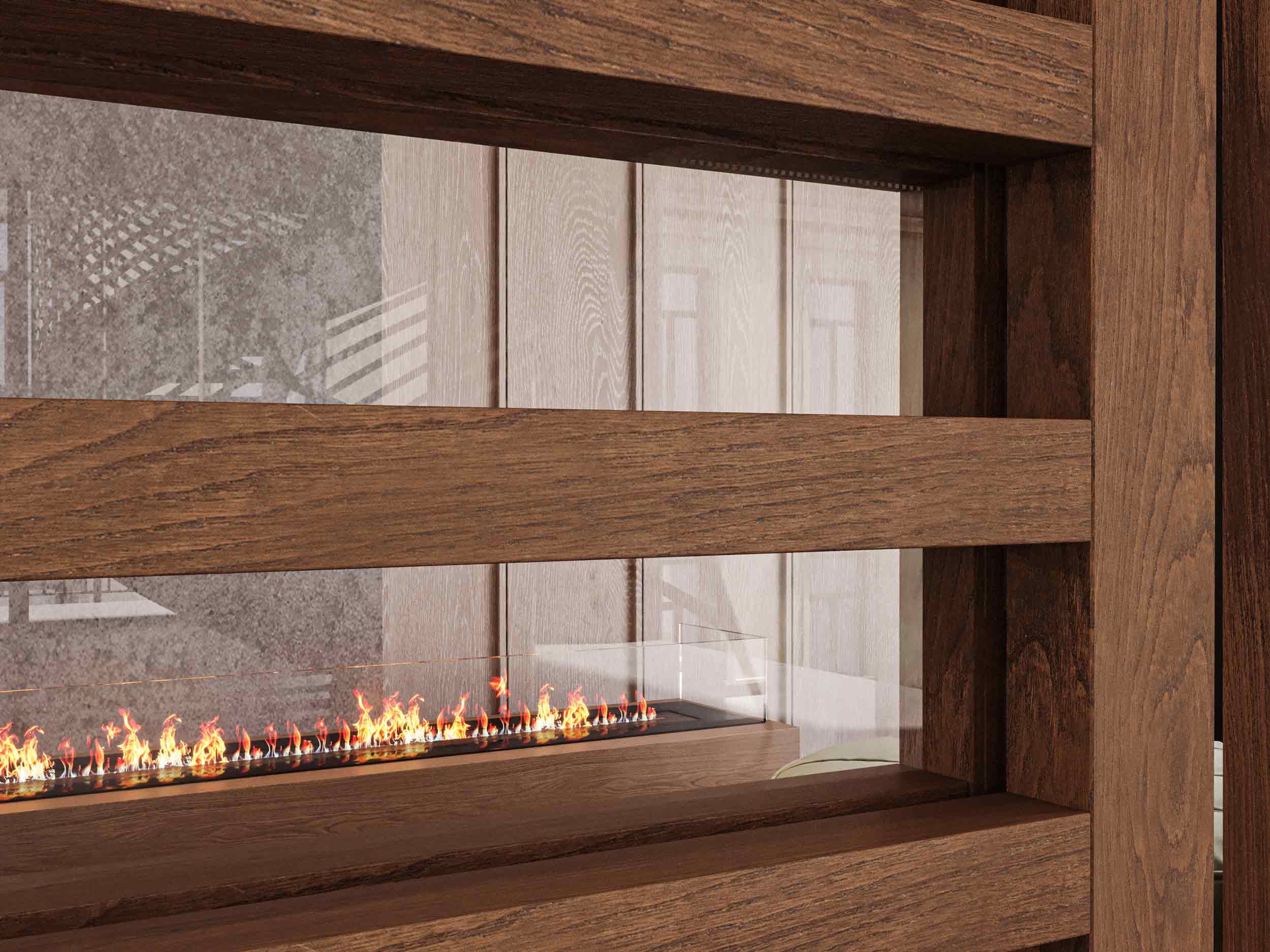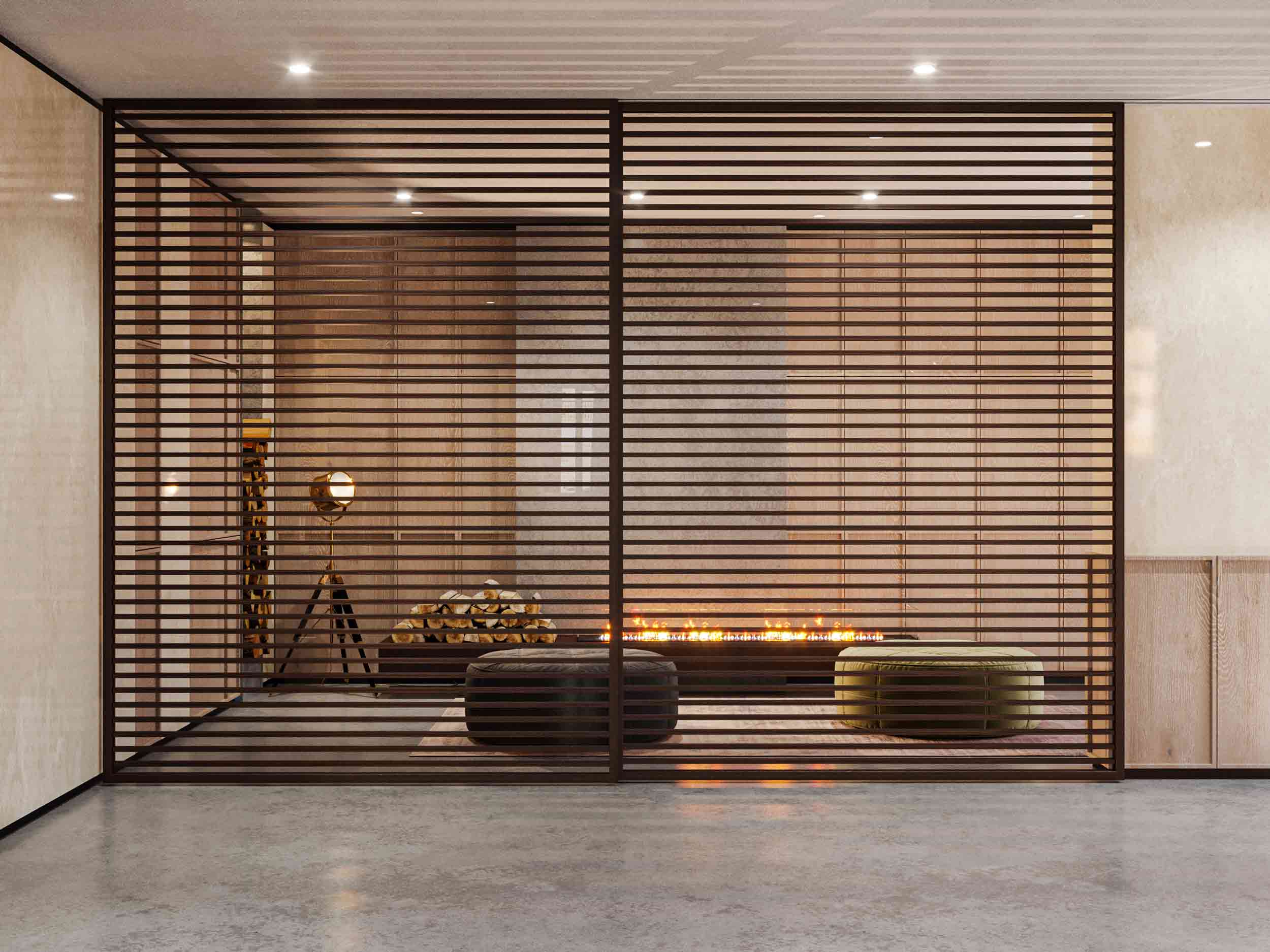 La versatilità del disegno dell’anta permette di personalizzare la casa in modo semplice e immediato. Le ante con listelli in legno o disegno a progetto, realizzate con profili in legno di varia larghezza, si prestano a essere utilizzate come pareti divisorie all’interno di un open space. Il passo e l’orientamento di ciascun elemento sono personalizzabili, così come la posizione e la finitura degli accessori (guide a scomparsa a soffitto, maniglie).