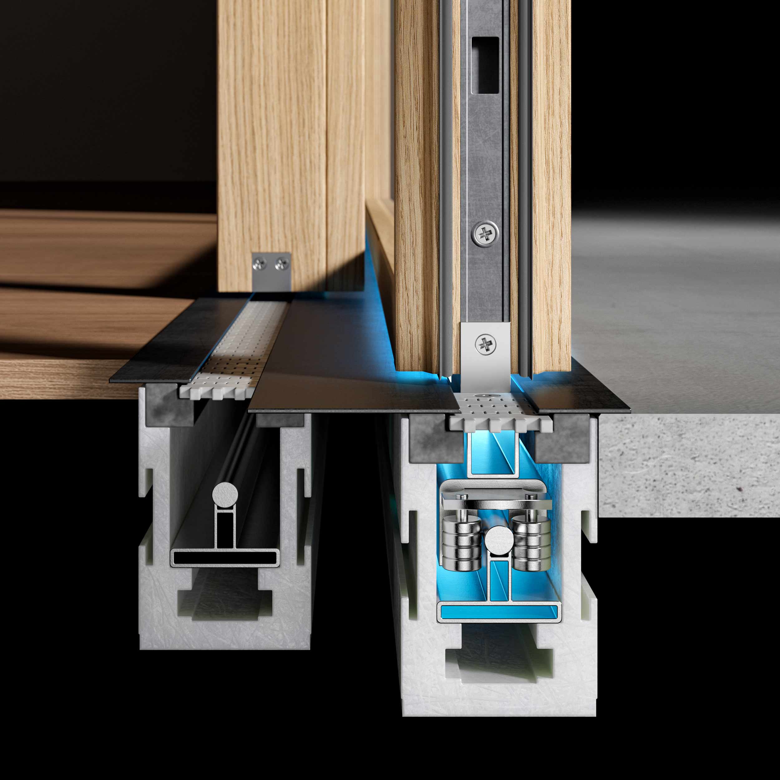 Grazie alla levitazione magnetica passiva, Skyline NØFORCE permette di muovere ante fino a 1000 kg con un semplice gesto della mano, congiungendo movimento fluido e stabilità assoluta, e trasformando la forza invisibile della tecnologia in un elemento di comfort quotidiano.